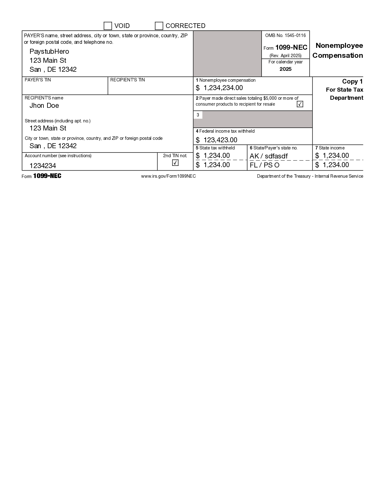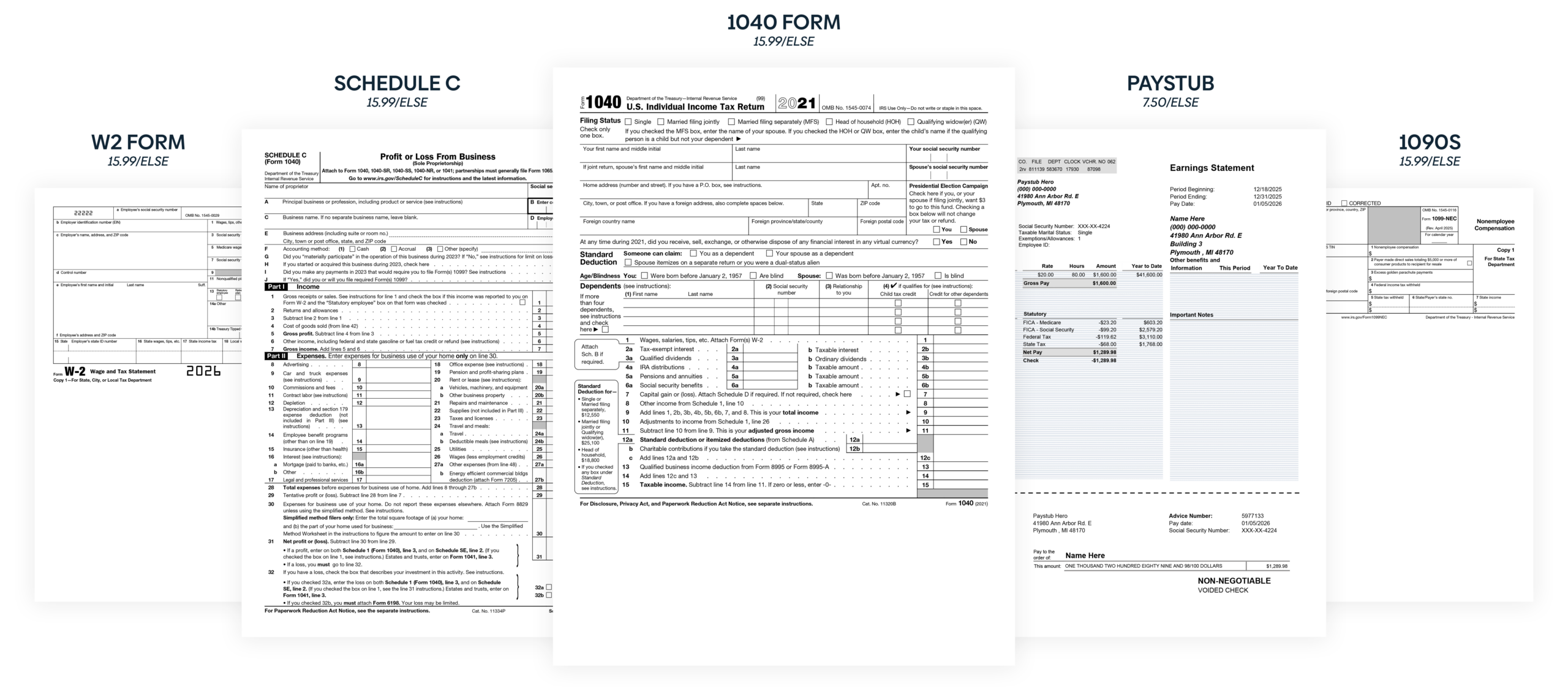 Pay Stub W-2 W-9 1099 NEC 1099 MISC Invoice Offer Letter Schedule C 1040